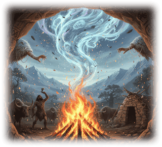 “First, the Whispering Wind found the First Fire. It did not try to blow it out, no. It merely sang its cold, quiet song around the edges of the flames. And with each verse, a tiny spark, no bigger than an eye-blink, would drift away, carried up to the vast, dark ceiling of the sky. The Fire did not notice at first, so great was its roaring heart.